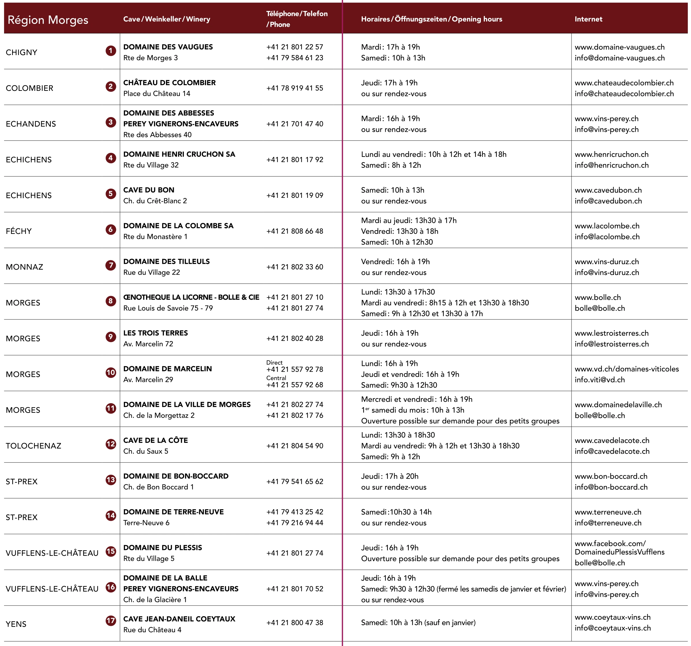 Les Vins de Morges vous proposent un «forfais dégustation» unique. Il vous permet de découvrir la richesse du terroir morgien à votre rythme, tout en bénéficiant des conseils des producteur•trice•s. Votre dégustation devient même gratuite dès l’achat de six bouteilles! Il vous suffit de vous présenter aux horaires d’ouverture des caves partenaires, indiqués dans le flyer ci-dessous et de demander le «Wine Tasting».